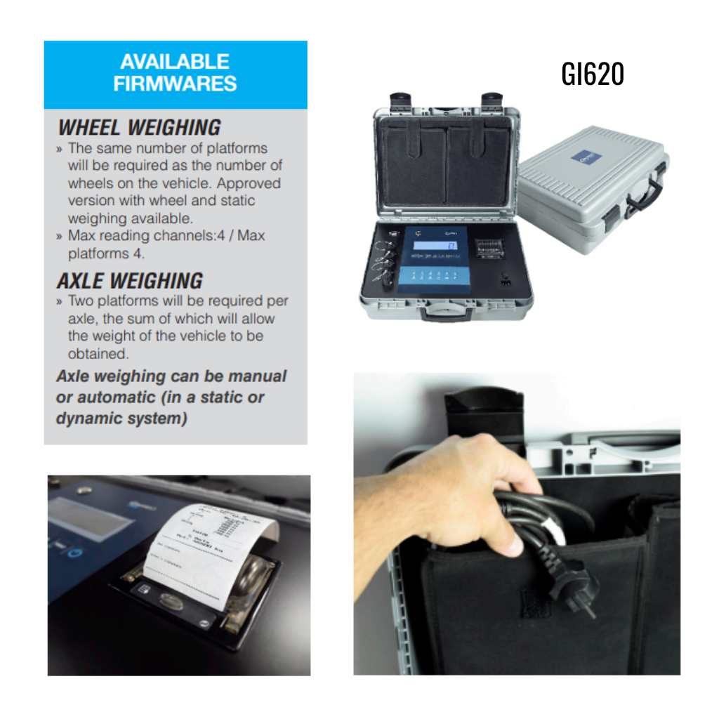 Wheel Weighing: The same number of platforms will be required as the number of wheels on the vehicle. Approved version with wheel and static weighing available. Max reading channels: 4 / Max platforms.